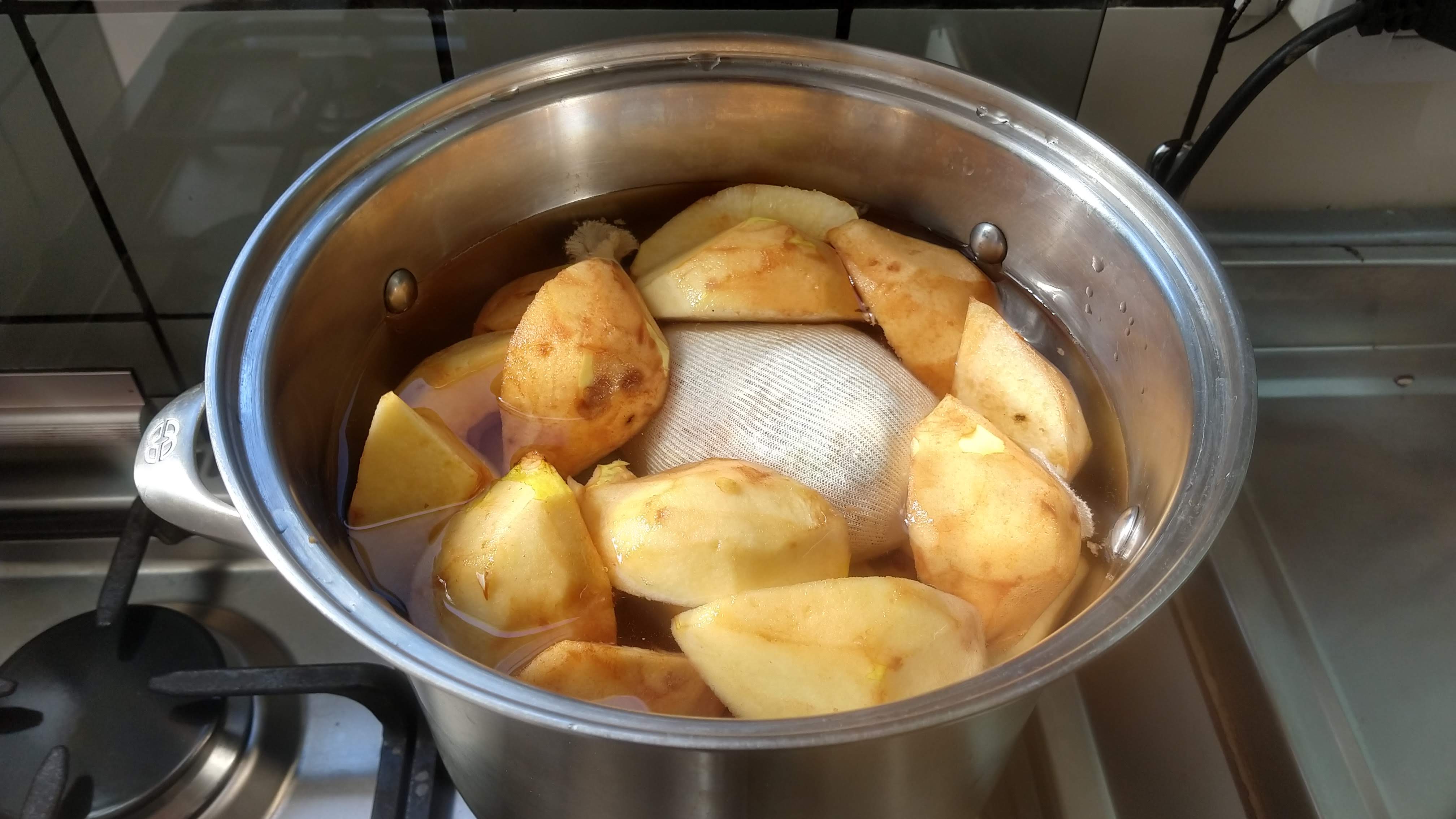 - Poner los trozos de membrillo en una cacerola y simplemente cubrirlos de agua