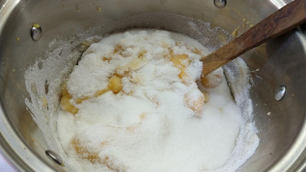 - Pesar el puré de membrillo y agregar la misma cantidad en azúcar