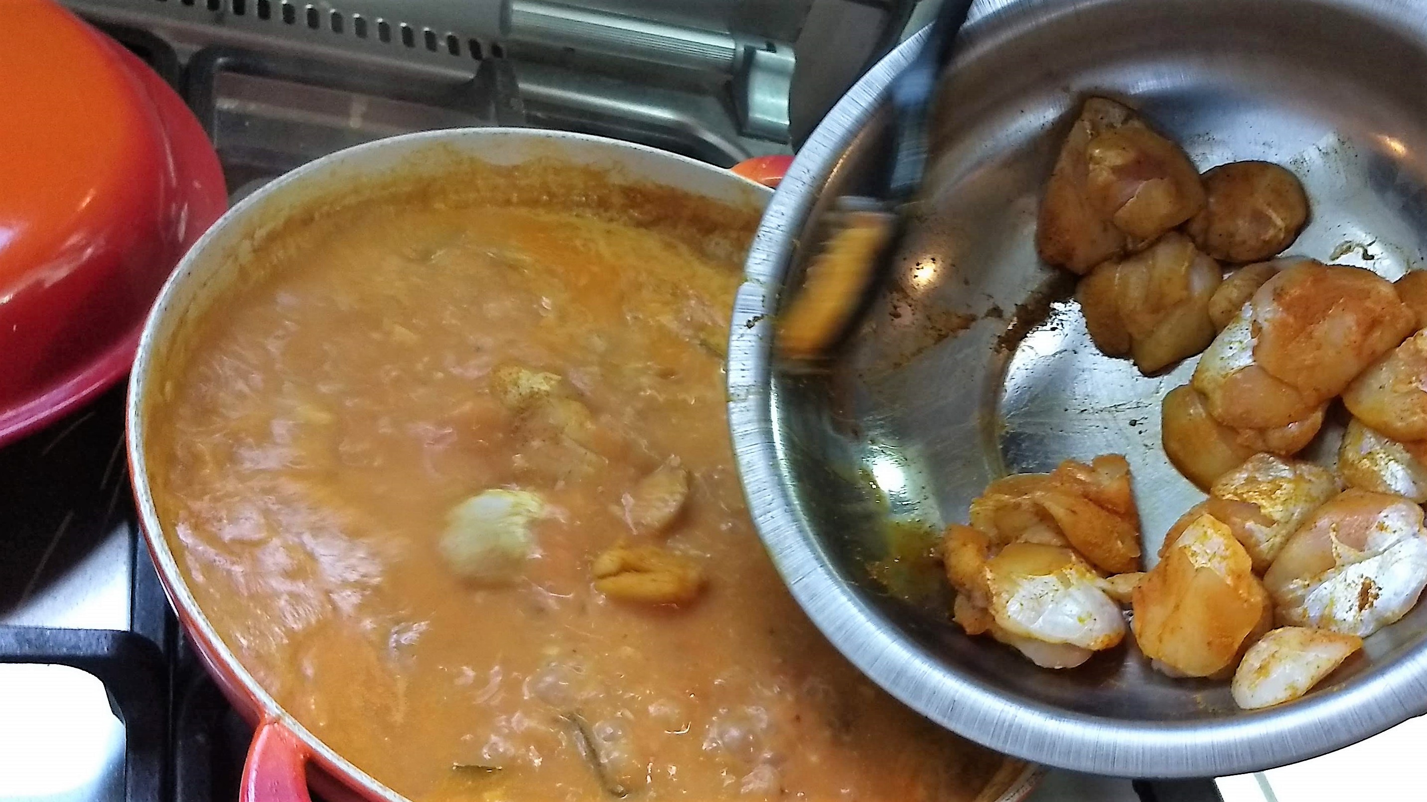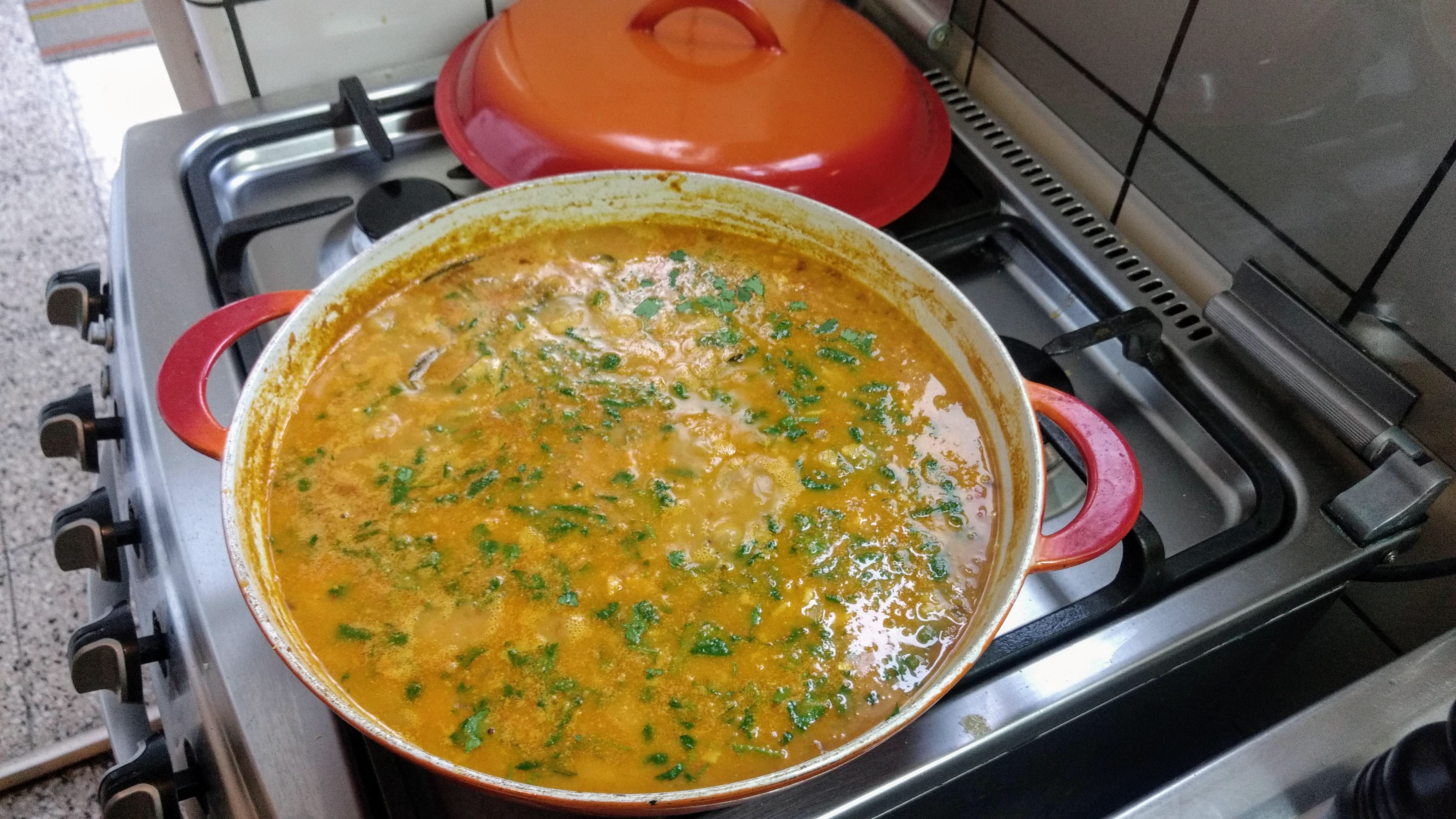 - Al sacar del tupper hervir unos pocos minutos (no más) y ajustar sal y sumar el pescado marinado. Si preparaste el curry el día anterior te conviene marinar el pescado una hora antes de usar el curry para que esté bien fresco