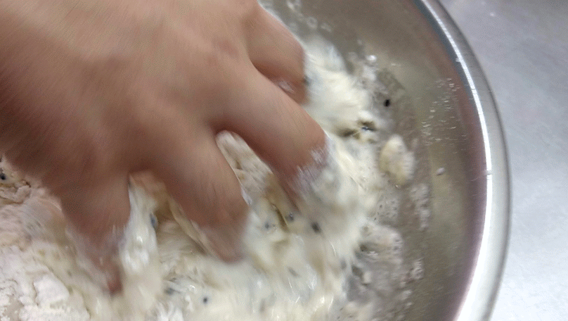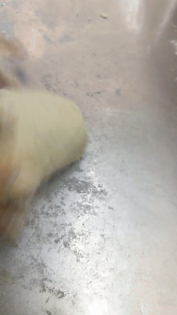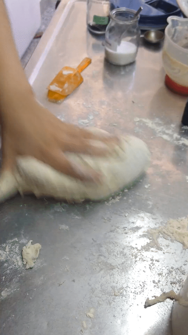 - Amasar por aprox 10 min, alternando las manos para no morir en el intento, hasta que la masa quede suave
