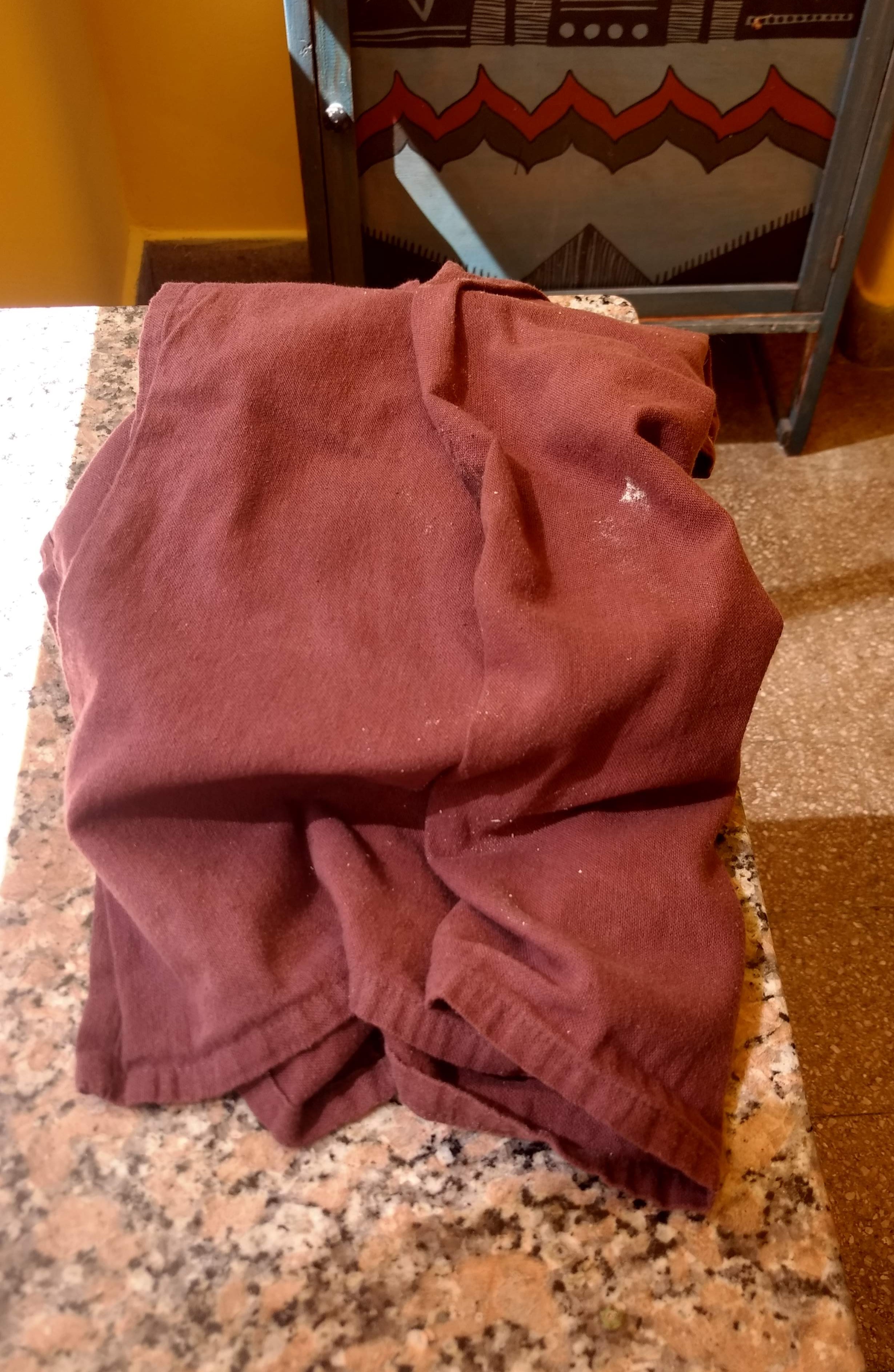 - Preparar un repasador que se usará para tapar la masa. Tiene que estar tibio, para ello se calienta sobre una fuente con agua hirviendo cuidando que no se moje