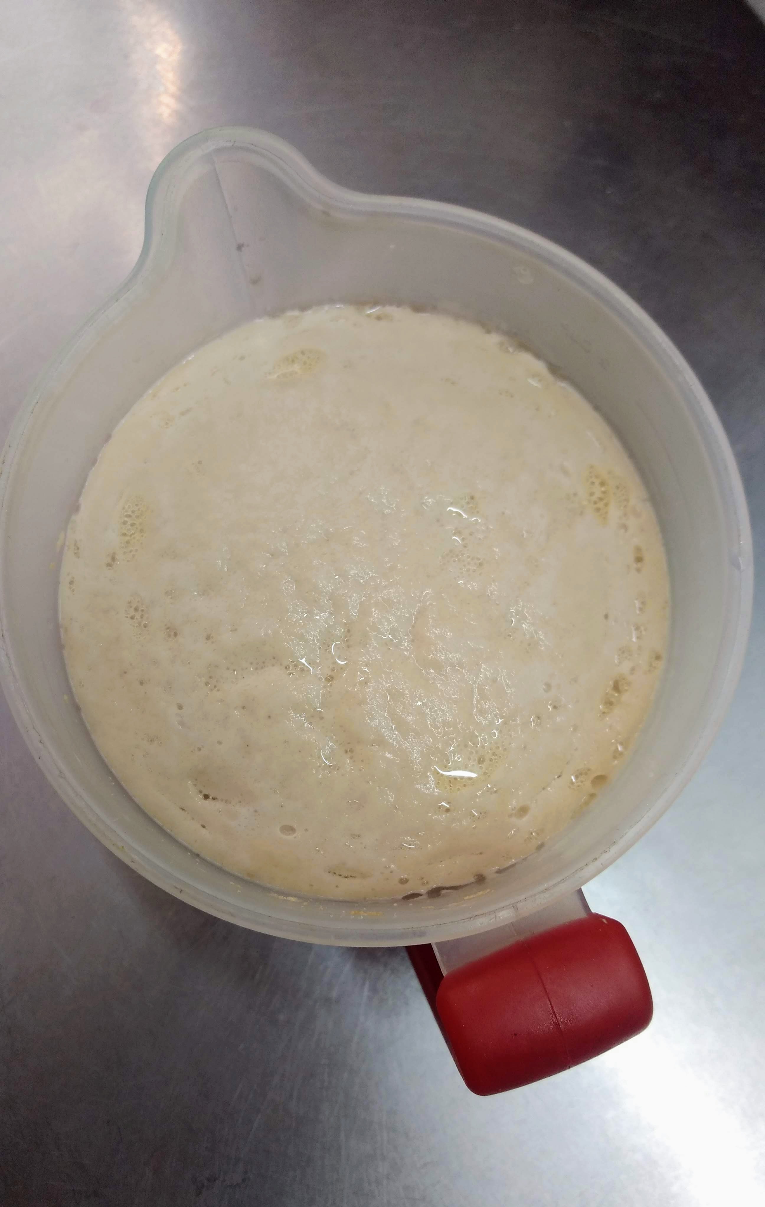 - Agregar la mezcla de la levadura y el yogur más la sal