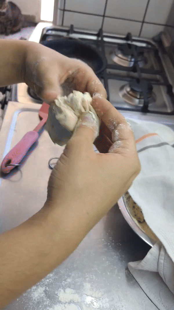 - Volvemos a poner harina sobre la mesada y se van cortando trozos de masa para armar pequeños bollos