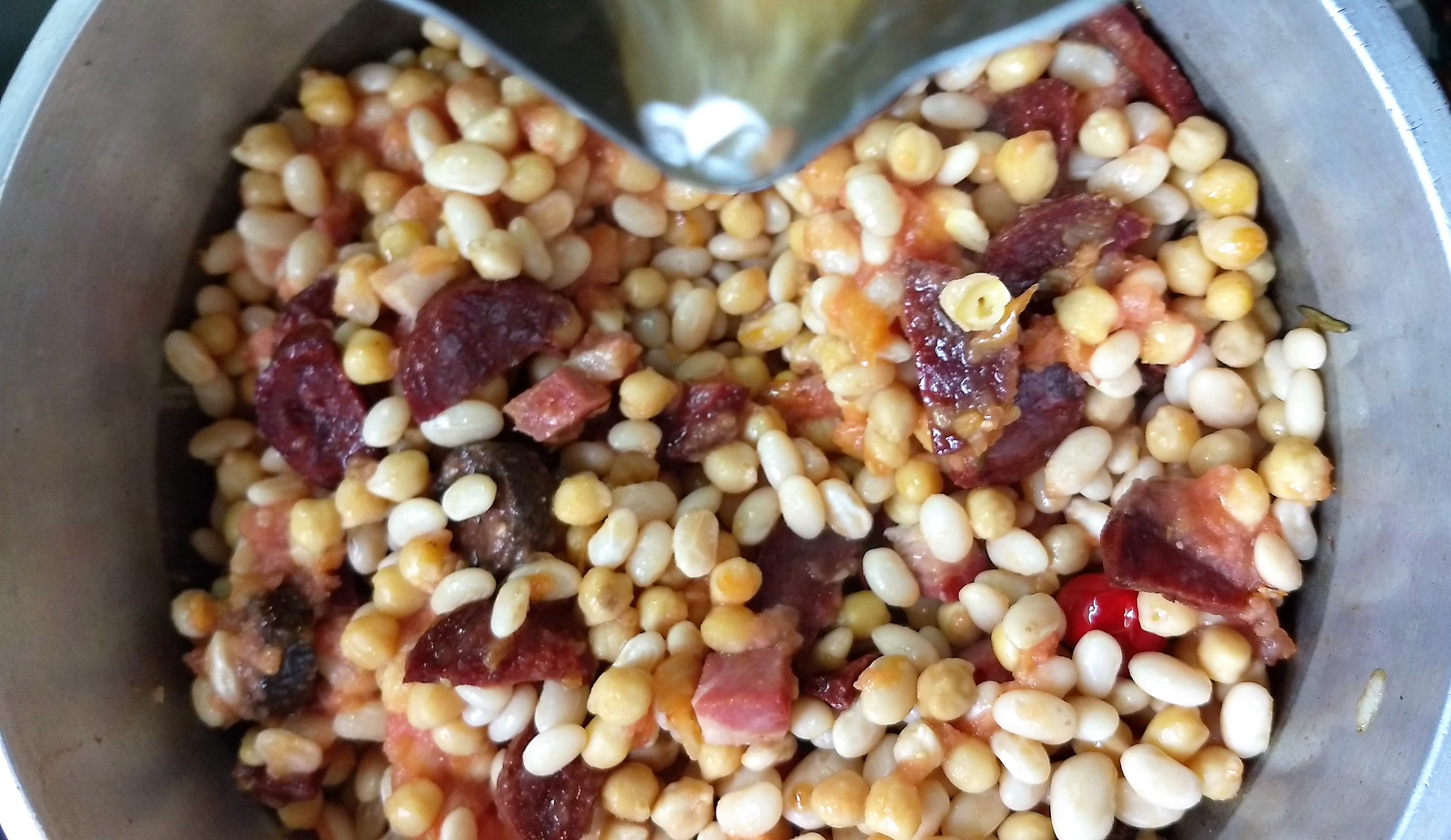 - Una vez que el sofrito tenga este aspecto 👇 agregar los porotos y garbanzos previamente cocidos