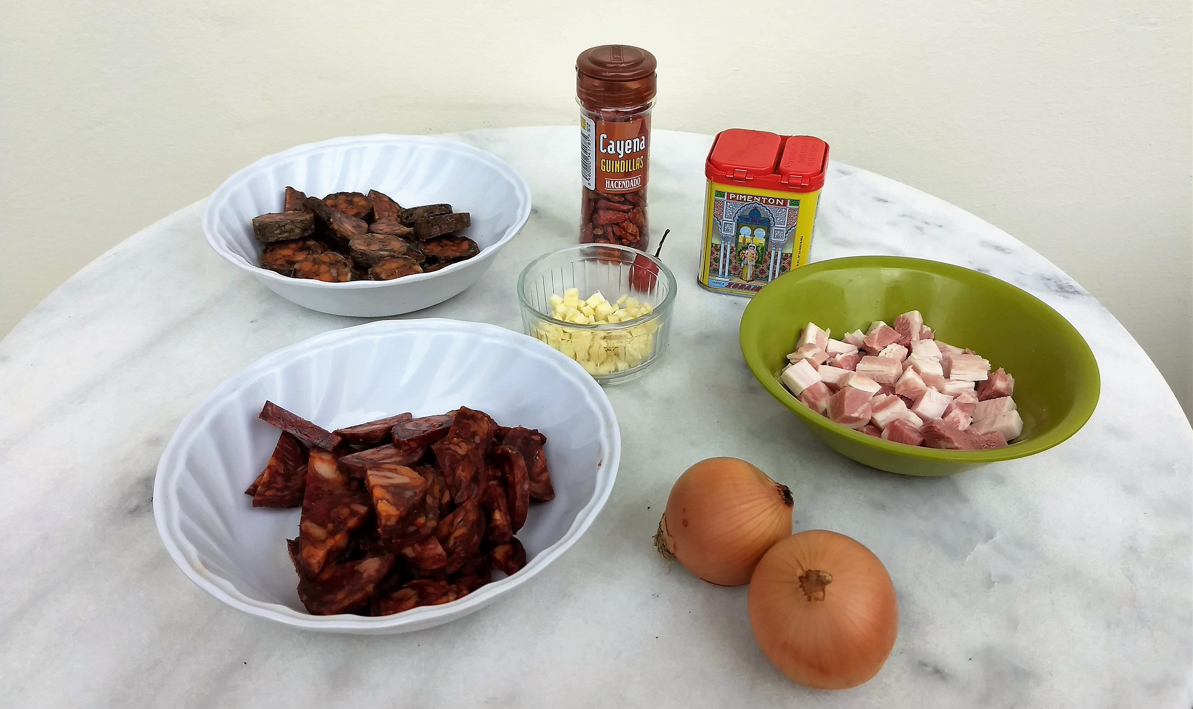 - 1 chorizo colorado (rodajas cortadas en mitades)