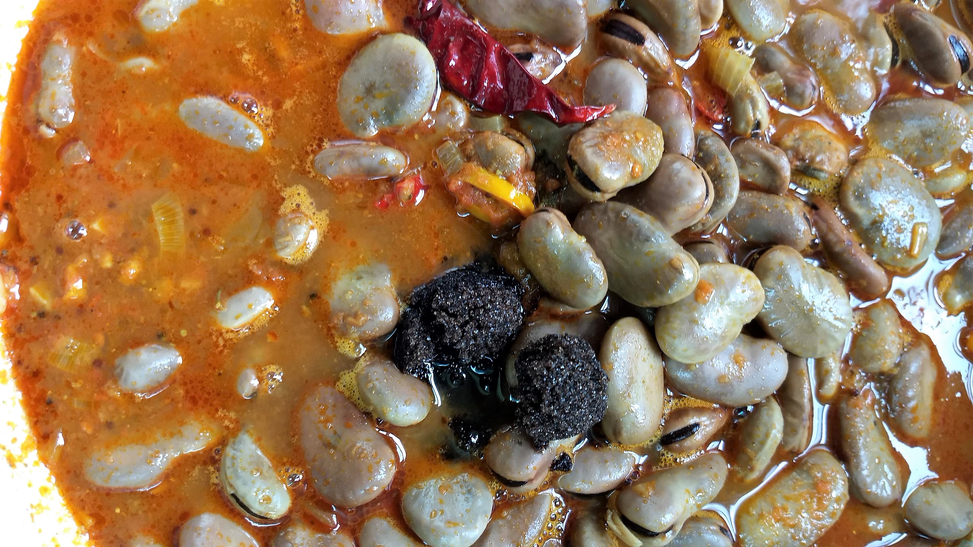 - Agregar las habas y el agua de cocción restante