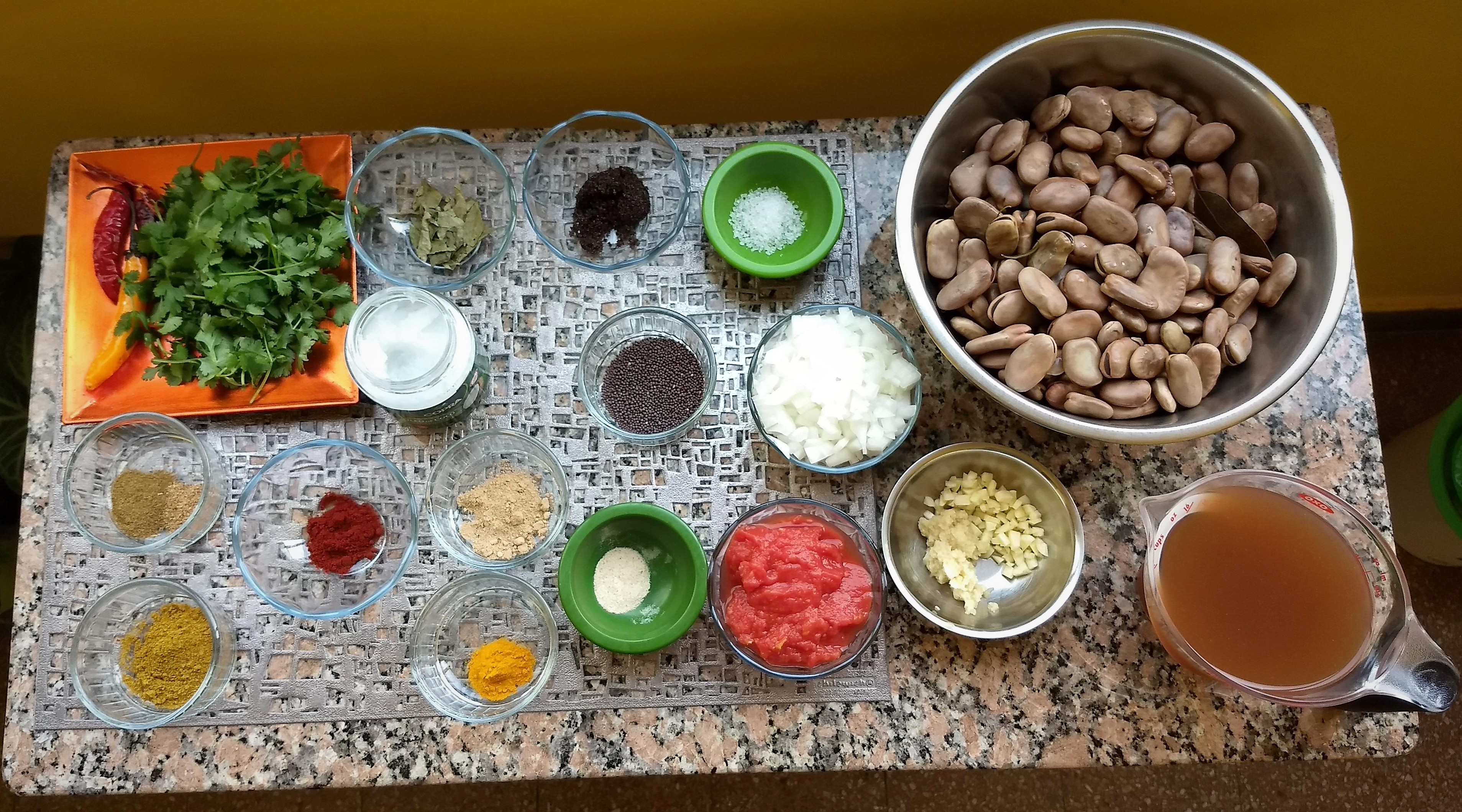 - 2 tazas del agua de cocción de las habas