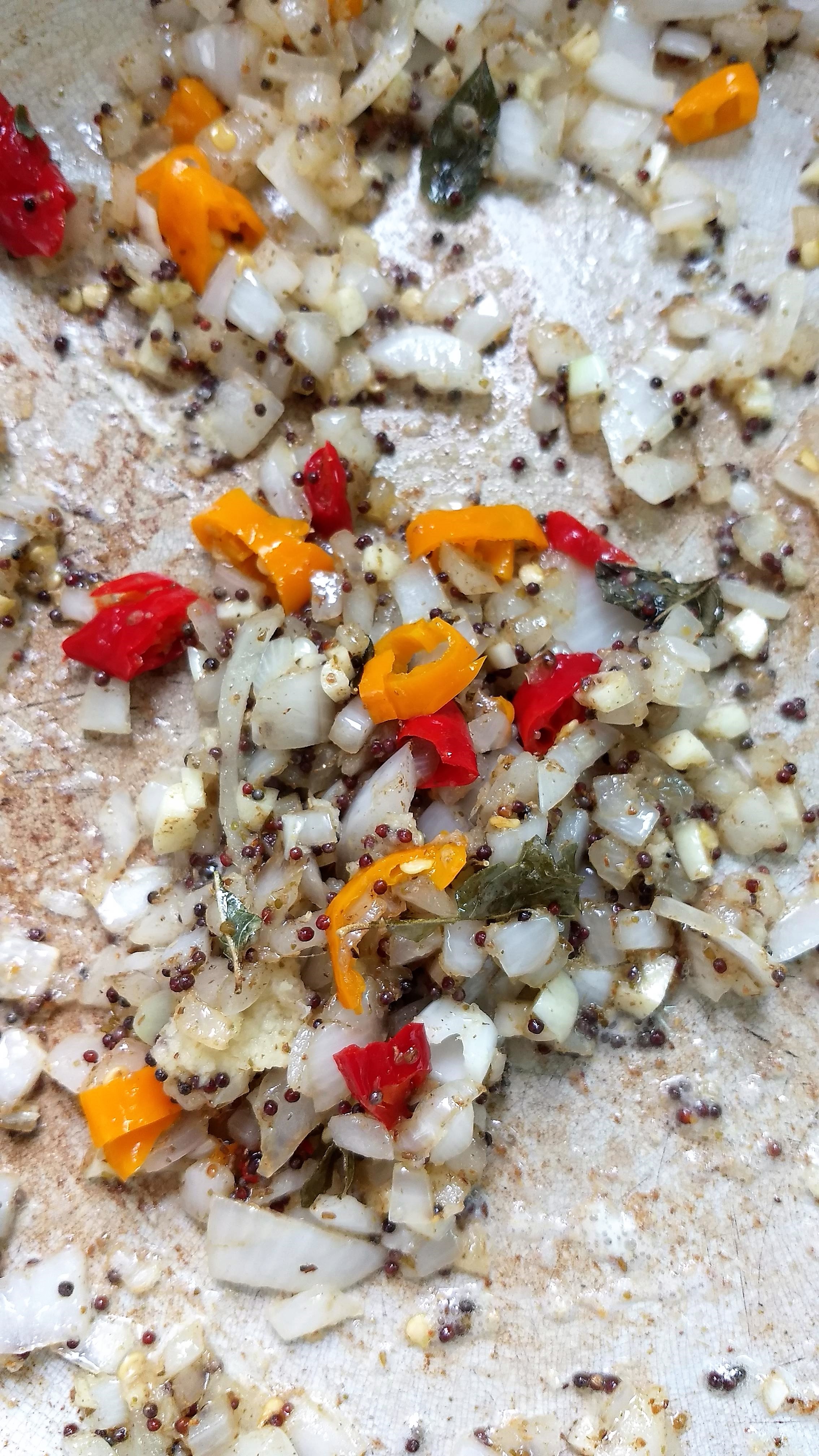 - Cuando tome temperatura colocar las semillas de mostaza y las hojas de curry