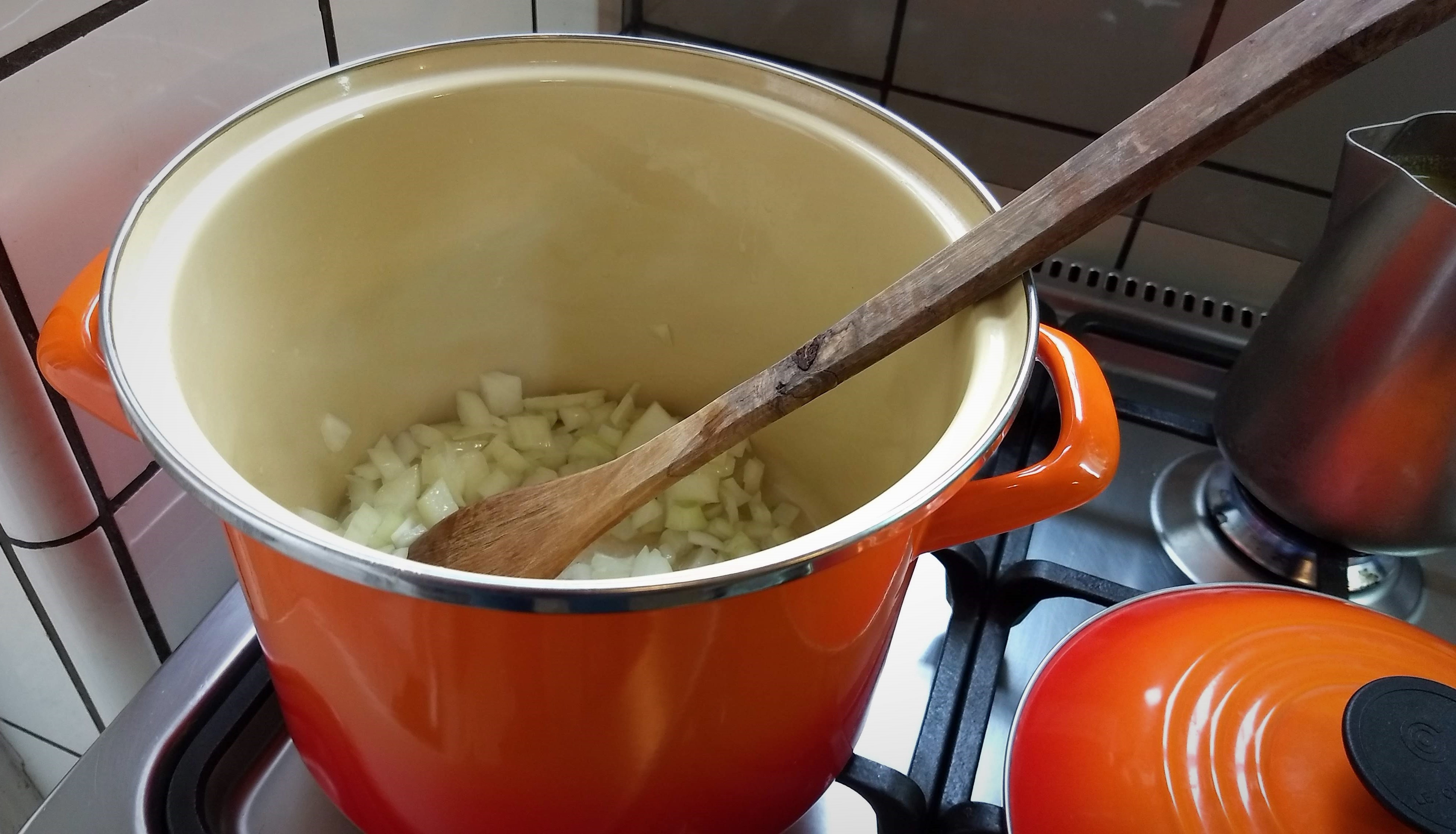 - Calentar el aceite a fuego medio en una olla para sopa