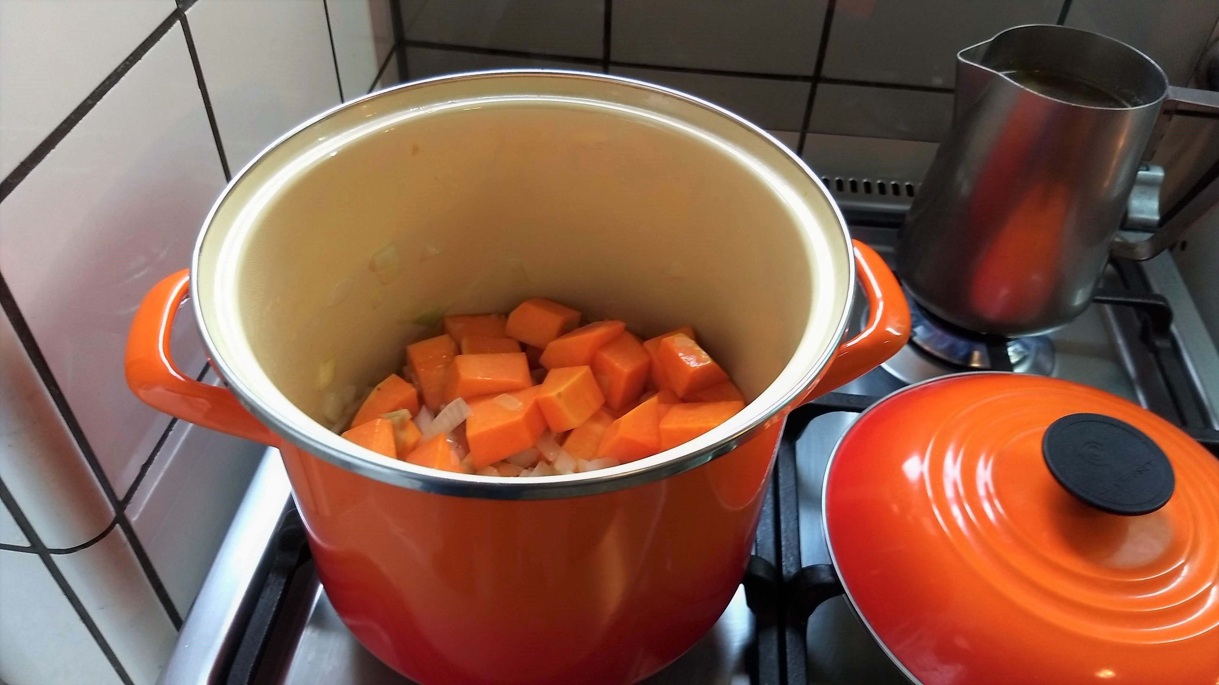 - Bajar el fuego y agregar la calabaza