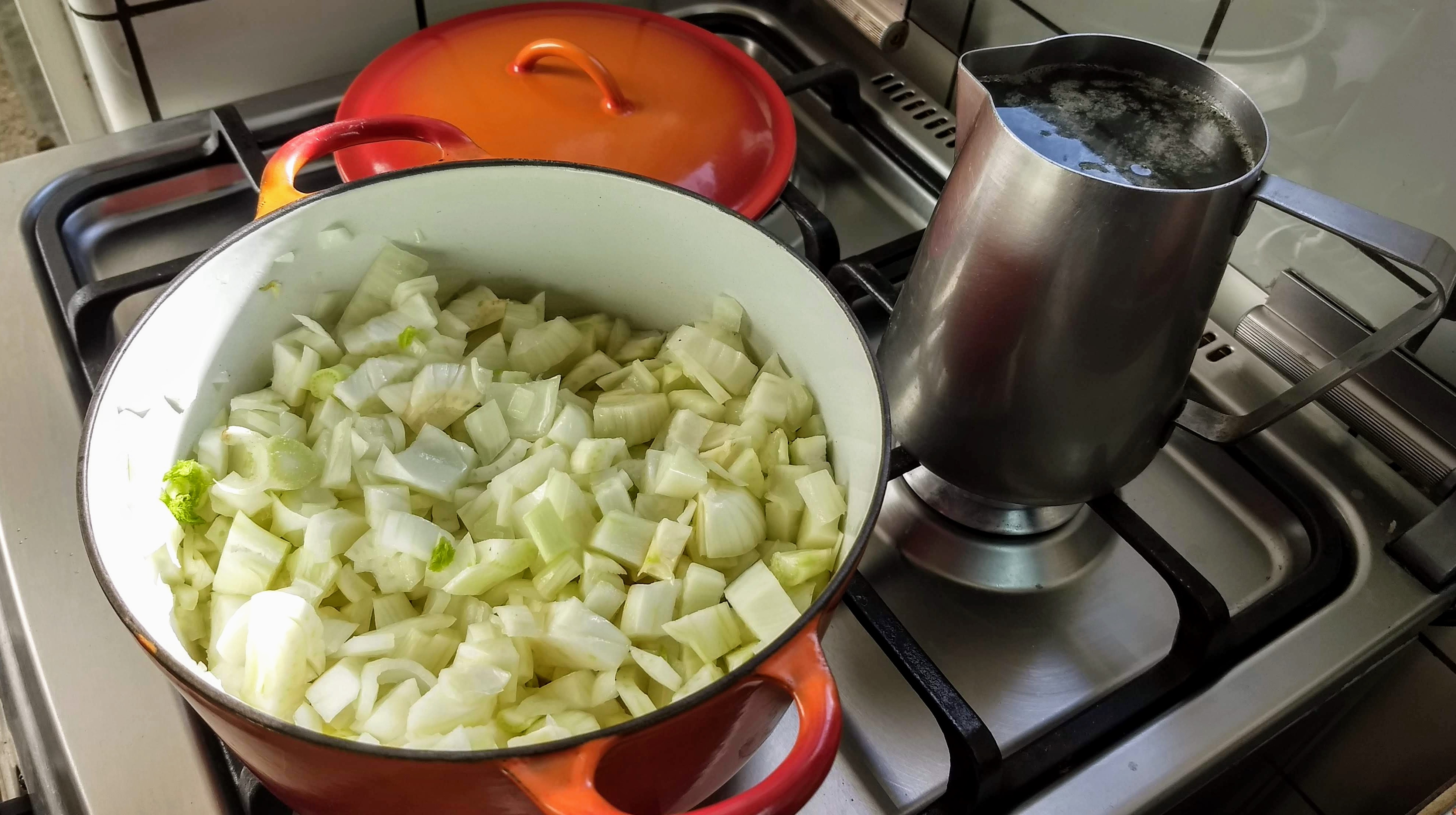 - Cuando los ingredientes estén a punto (blandos), apagar el fuego