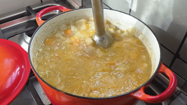 - Procesar con un mixer o en licuadora hasta que quede una mezcla aterciopelada