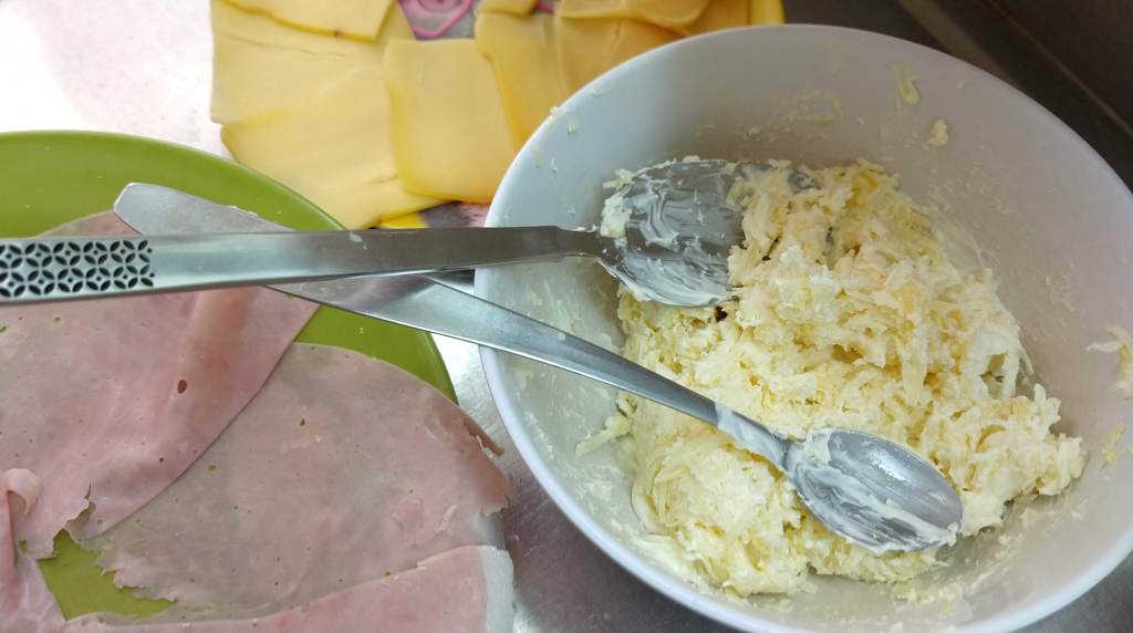 - 2 fetas de queso semi duro (Gruyère, Emnental, Tomme, Comté)