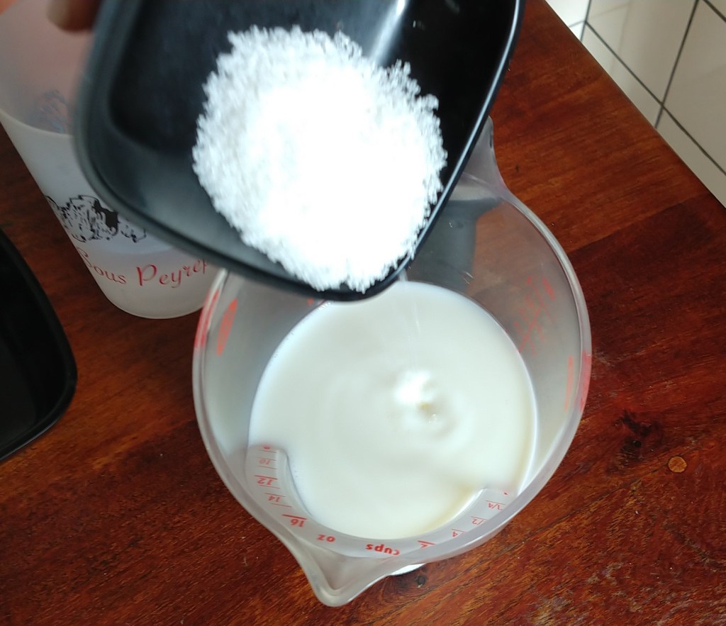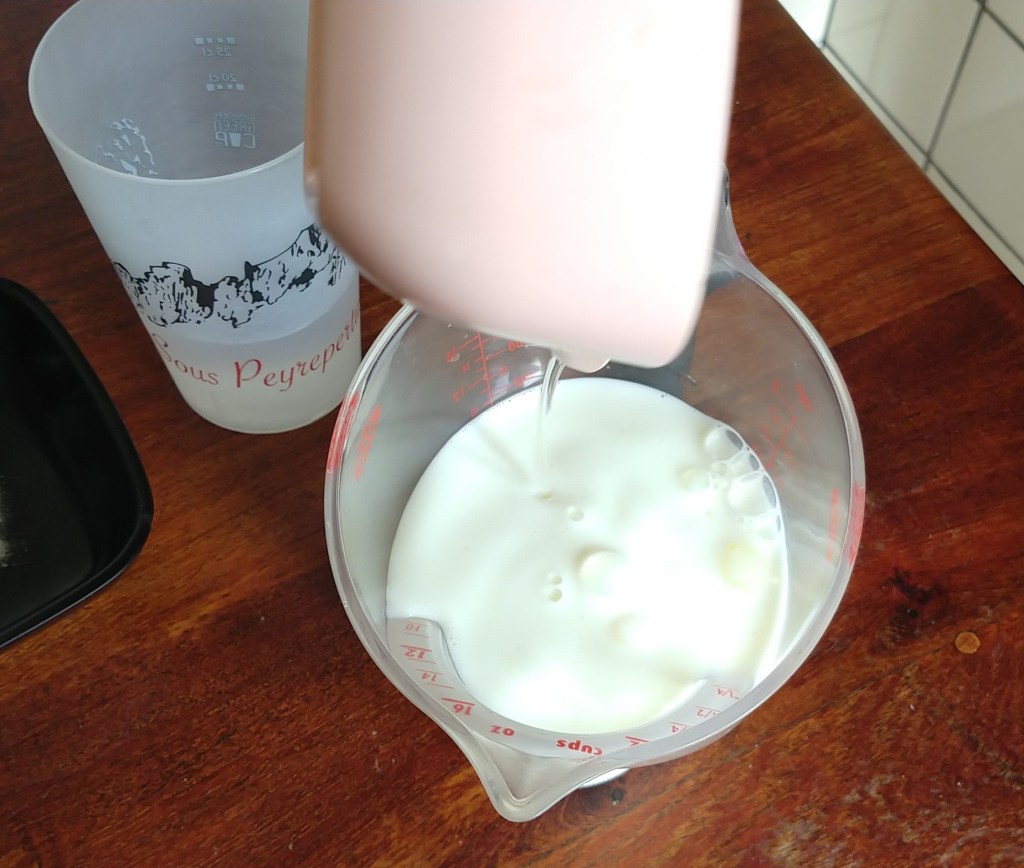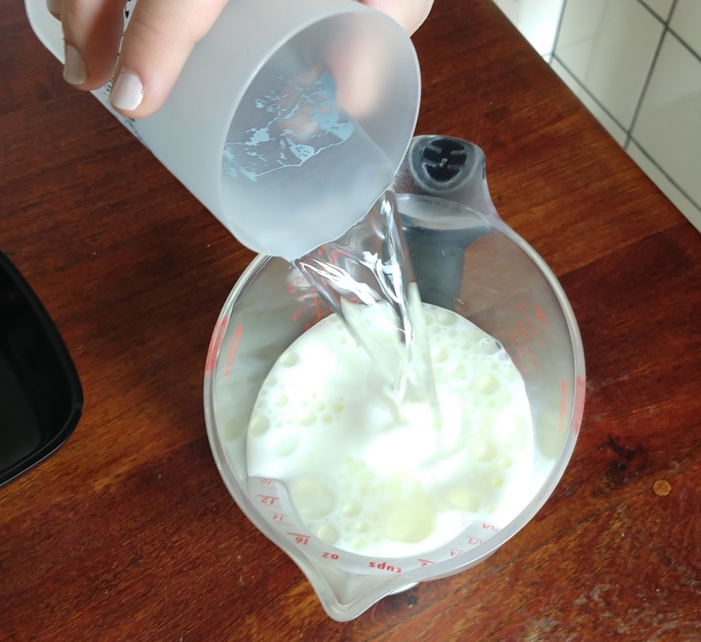- En otro los elementos líquidos (leche, agua y aceite) junto con el azúcar