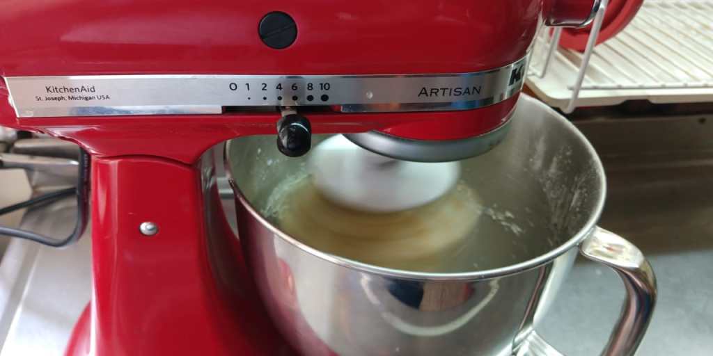 - Una vez que se obtiene una mezcla pareja subir la velocidad y amasar por unos 10 min.