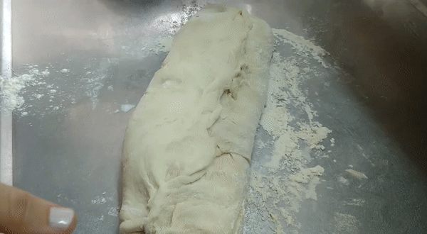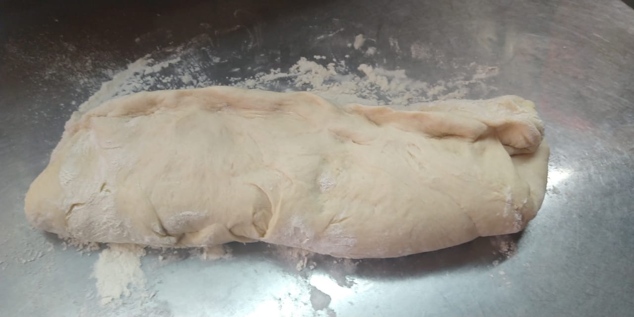 - Estirar sobre una superficie enharinada y dar la forma que se muestra en las imágenes