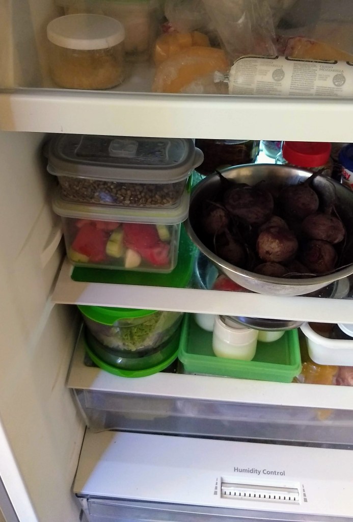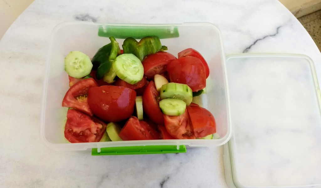 - Una vez escurrido el pepino colocar todos los elementos en un tupper, salar, rociar con un poco de vinagre y aceite y llevar a la heladera por un día