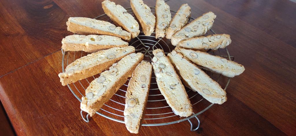 Los biscotti o cantuccini son especialidad de la gastronomía toscana. Es una masa seca de almendra que tiene una doble cocción (de allí el bis-cotto, cocido dos veces). Primero se cuece la masa completa que luego es cortada en rebanadas de aproximadamente 1 cm (en caliente, sino queda como una tostada), y luego vuelta a cocer en trozos durante un rato más. Ideal para acompañar un café, té y hasta vino dulce también. La preparación es muy fácil y todo el proceso no lleva más de 1 hora.