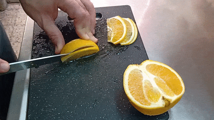 - Cortar las naranjas en finas rebanadas
