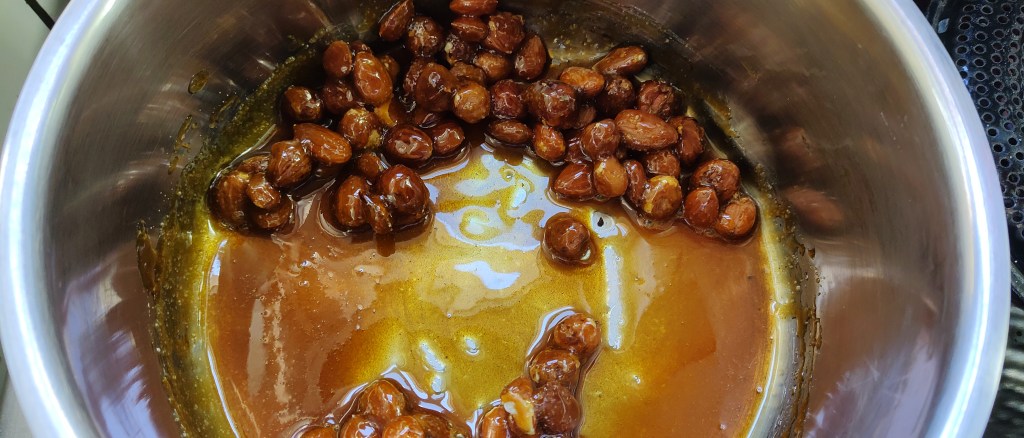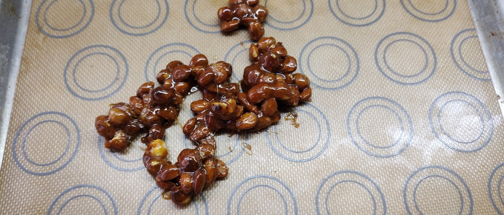 - Añadir las almendras y las avellanas. Mezclar hasta que queden bien recubiertas