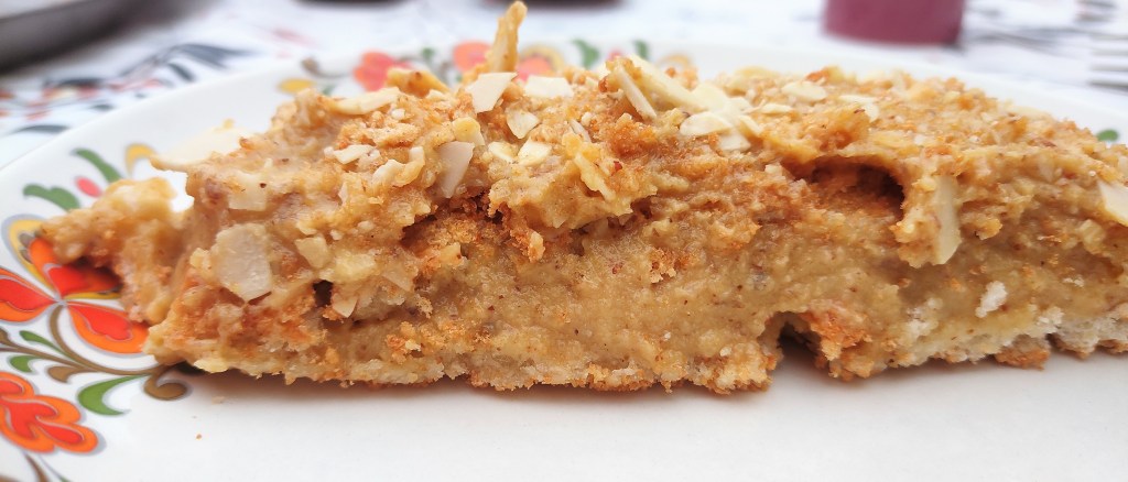 - Se puede cubrir la superficie con las almendras fileteadas tostadas y espolvorear azúcar impalpable.
