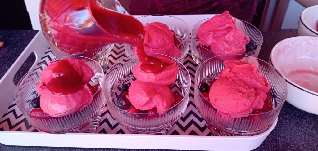 Puede acompañar cremas heladas, tartas de queso, etc.
