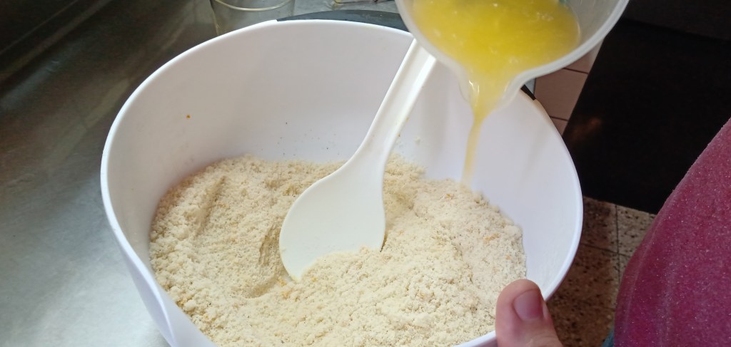 - Mezclar la harina de almendras con el azúcar.