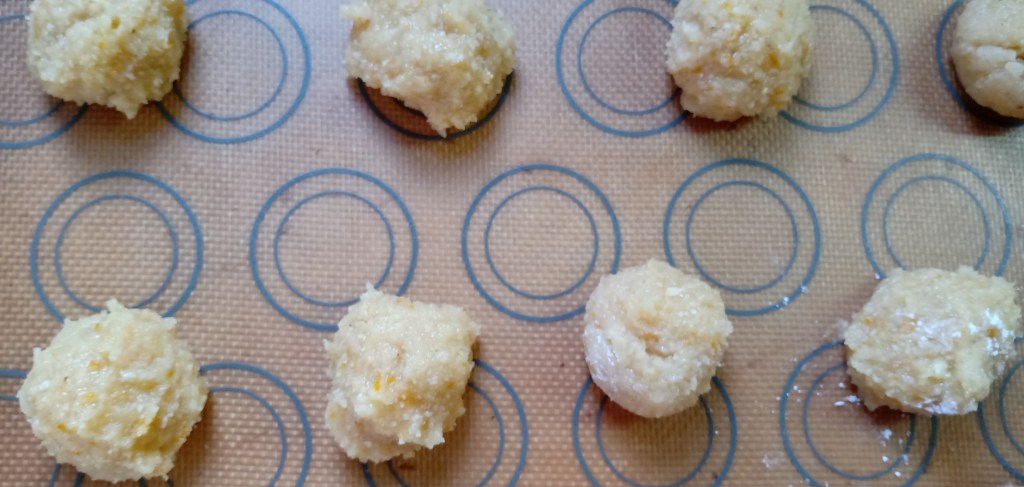 - Colocar las bolitas en una placa con mat de siliconas o papel manteca.