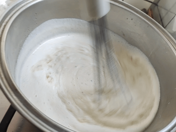 - Cuando el preparado comienza a espesar, revolver constantemente con una cuchara o espátula.