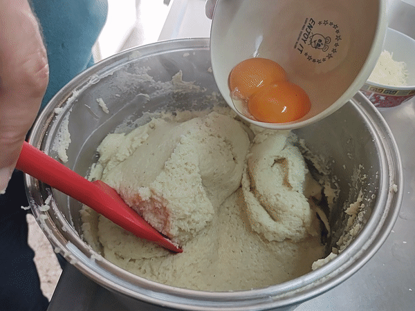 - Retirar del fuego y agregar las dos yemas y mezclar bien.