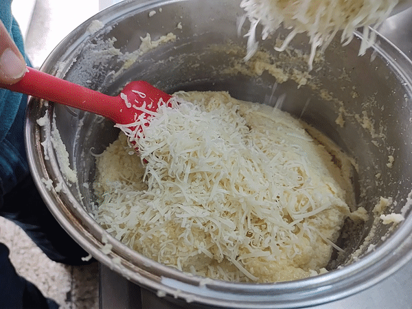 - Agregar el queso de rallar y volver a mezclar.