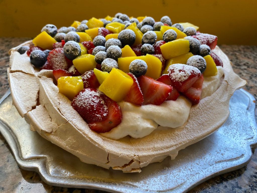 Seguir leyendo Tarta de chocolateDe origen disputado entre Nueva Zelanda y Australia, la Pavlova es un postre compuesto por una base de merengue francés (con algo de fécula de maíz), sobre la cual se pone una crema chantilly y trozos de frutas varias, aunque habitualmente suelen ser frutos rojos. La clave es que el merengue resulte crujiente por fuera pero húmedo al interior.
