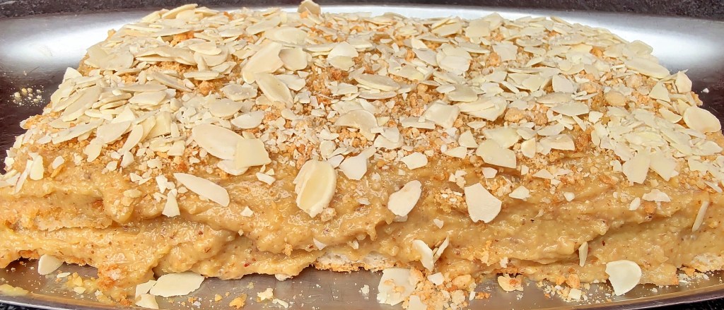 Este pastel, consiste en una masa de merengue almendrado con una crema de praliné. Textura esponjosa y sabor a frutos secos, es una tentación del demonio. Aunque no es difícil de hacer, son varios pasos los que hacen falta, así que hay que tomárselo con calma.